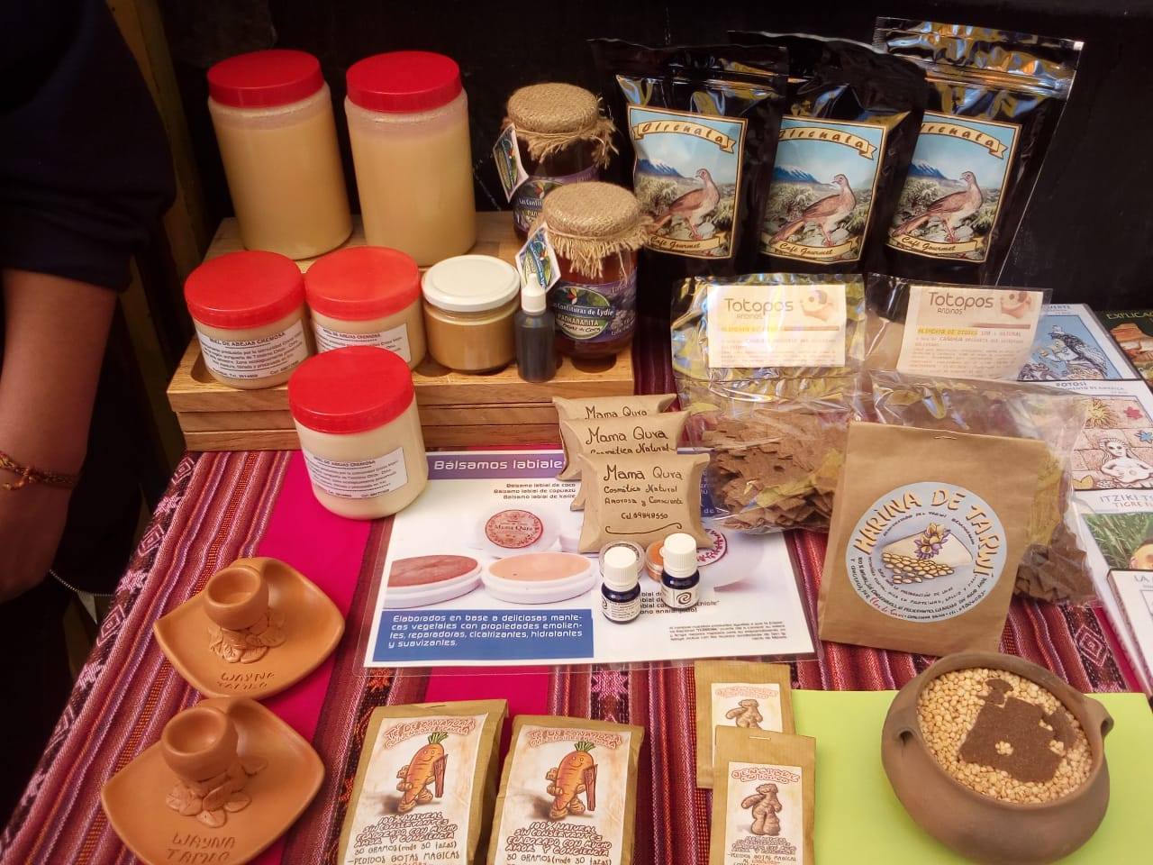 El Qhatu del Wayna Tambo es un espacio de encuentro para el canje, el trueque y otras economías de reciprocidad y redistribución, ubicada en la ciudad de El Alto, en plena feria de Villa Dolores (“Villa Colores” como le nombro nuestra compañera Mauge Galarreta). Nos sumamos a la feria de Villa Dolores, porque nos sentimos parte del territorio, generando intercambios con los productores y productoras que llegan desde provincia cada martes y viernes. En el espacio puedes encontrar producciones y bienes culturales, alimenticios y artesanales que vienen de la mano de artesanos y productores/as de baja escala. El Qhatu hace parte del sistema de economías y reciprocidad de la Red de la Diversidad denominado la ILLA, se gesta desde la idea de alternativa a las formas de mercado habitual, se trata de vigorizar otras economías más solidarias, mas reciprocas de circulación de bienes sin la acumulación ni el excedente siempre con miras a la revalorización de nuestros productos y a través de ello al cuidado de la tierra que produce lo que consumimos.