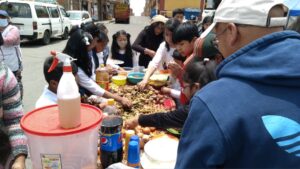 Fue el 16 de diciembre esa actividad de cierre. Llevamos muestras, pancitos, talleres de medicina tradicional, la radio en vivo y callejera, los juegos. Lxs niñxs presentaron su trabajo musical fruto del taller, las familias orgullosas de esos avances. Presentamos el mural vecinal que realizamos junto a nuestrxs hermanxs de Teatro Trono. Tuvimos el teatro de Aymilla Producciones y Tarambanas. Cerramos con un apthapi comunitario. Las familias trajeron su aporte, las caseritas del mercado, lxs niñxs, nostrxs y la gente de Inti Phajsi. Compartimos, nos abrazamos comunitariamente, sentimos el territorio cada vez más digno y nuestro, compartido.