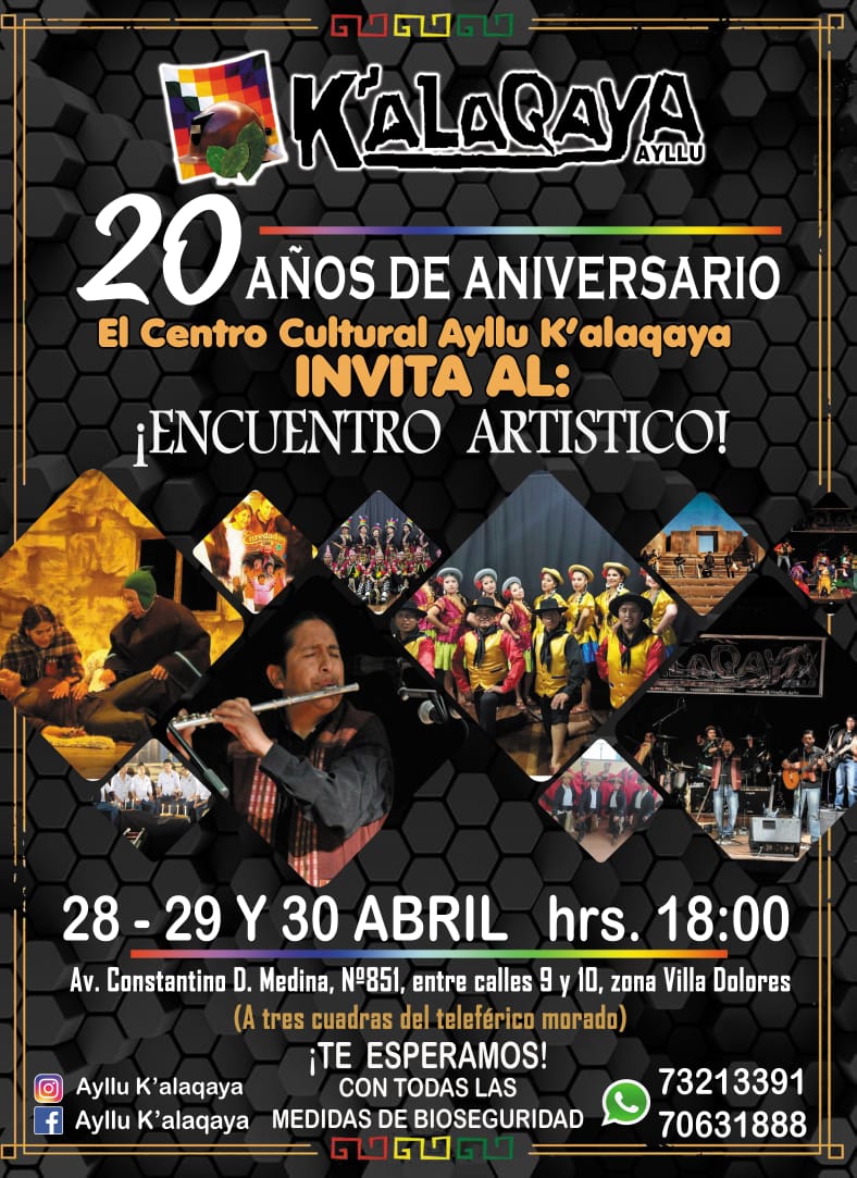 30 de abril: encuentro musical y velada artística con danza y teatro, música en vivo de Jacha Thunupa y K’alaqaya.
