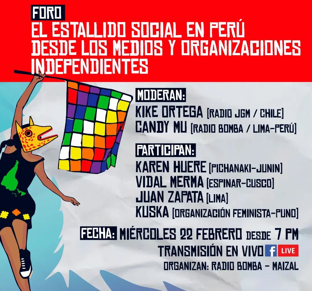 Las personas que somos parte de este foro somos comunicadores comunitarios, parte de organizaciones sociales que venimos haciendo seguimiento y acompañamiento a lo que viene aconteciendo en territorio peruano y justamente es que denunciamos esta violencia desmedida que se viene dando desde el 07 de diciembre del 2022.