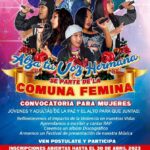 Valentina Campos (pintora) y Marisol Díaz (cantante y escritora) de Uywana Wasi en Incahuara, Angélika Llankamil (musica mapuche) desde Santiago de Chile y Rocío Chuquimia (artista plástica) con residencia hace varios años en la ciudad de El Alto, se encuentran e intercambian en «Los 4 lados del círculo» de Wayna Tambo en El Alto, el 14 de abril del 2023.