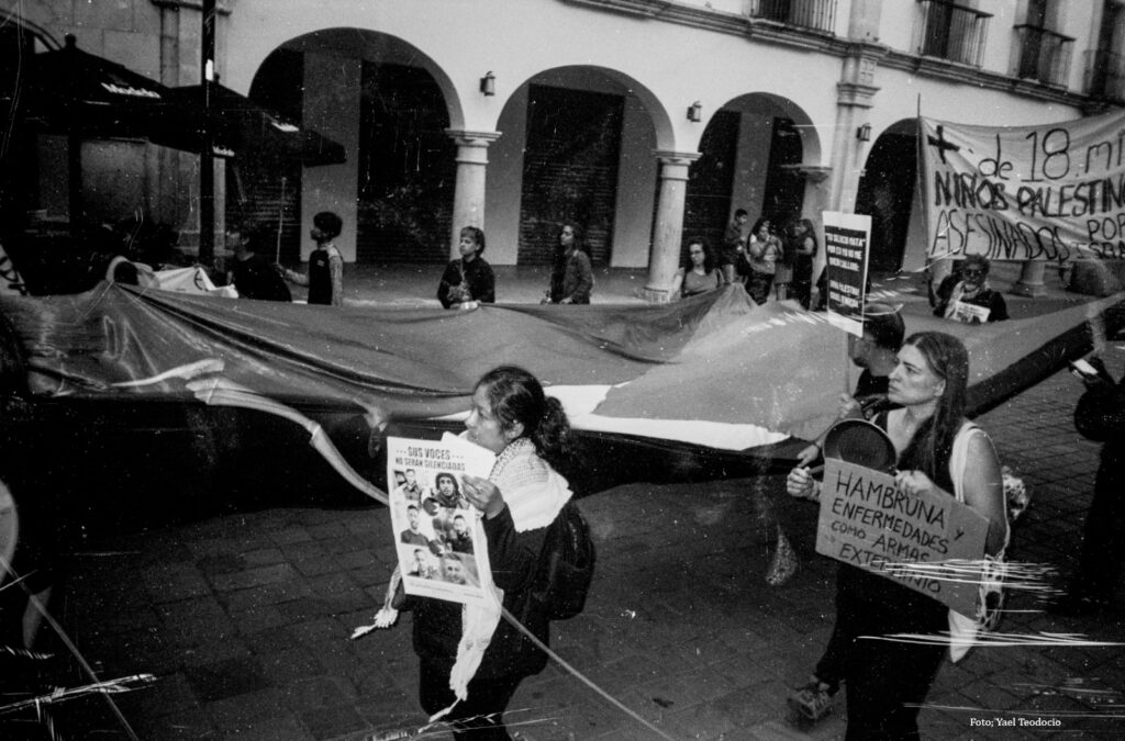 Por su parte, el Colectivo Oaxaca en Solidaridad con Palestina, tomó impulso a partir de coincidir en el espacio público, en la ocupación para denunciar la violencia asimétrica del conflicto. En el reconocimiento de quienes han ido integrando la organización, se han encontrado raíces convergentes con la Asamblea Popular de los Pueblos de Oaxaca (APPO), que desde el año 2006 ya reivindicaba la lucha palestina. También, en la conformación se han apreciado proyecciones tan íntimas como sensibles.