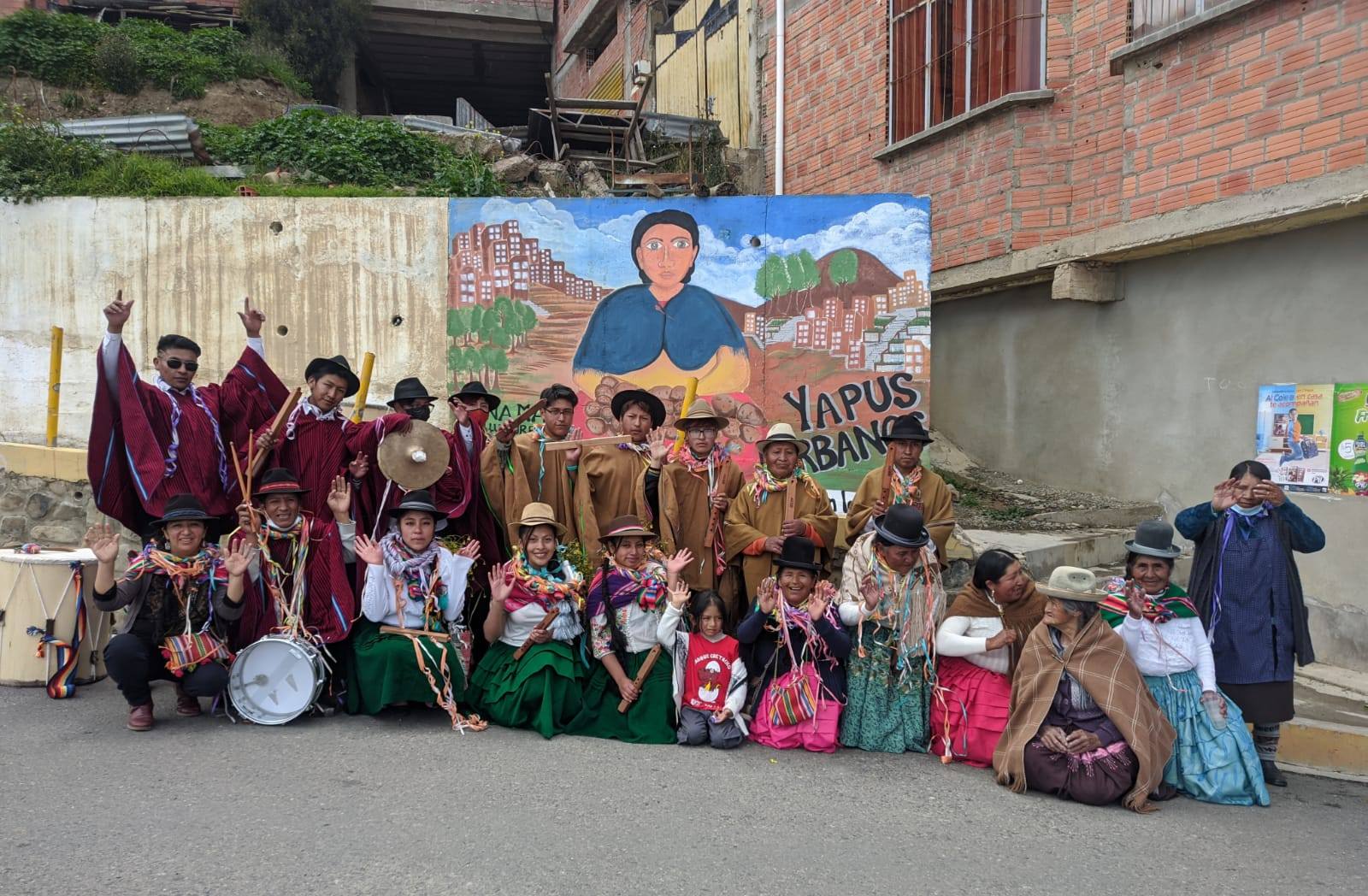 Archie nos dice: Soy miembro también del equipo de coordinación del Ayllu Urbano Ninamayu, así lo hemos denominado y ya estamos haciendo el quinto año más o menos de trabajo en territorio ahí en la zona de Alto Tacagua del macrodistrito de Cotahuma en la ciudad de La Paz. Estamos en la última parte de este trabajo en todo este tiempo donde habíamos sacado la sistematización, la parte principal se podía decir casi antes de concluir todo un proceso de tres años, el segundo año que hemos logrado tematizar lo que es el Ayllu Urbano y el resumen pues es todo lo que habíamos vivido luego de trabajar en el barrio con el territorio, con las lenguas, el idioma Aymara que se encontraba en el barrio, la música que se encontraba en el barrio también junto a los abuelos, por supuesto las prácticas ancestrales de siembra y cosecha de la papa y la organización que está en el mismo barrio y todos estos elementos son los mismos que se daban en el Ayllu de las comunidades, territorio, idioma, prácticas, organización y todo eso existe en un barrio de las laderas de la ciudad de La Paz, si están un poco desintegradas pero cuando las integras en nuestro caso, alrededor del Yapo urbano que es la siembra y cosecha con saberes ancestrales, entonces te da el Ayllu Urbano, eso en pocas palabras sigamos empezando por el final de nuestro proceso de Ninamayu.