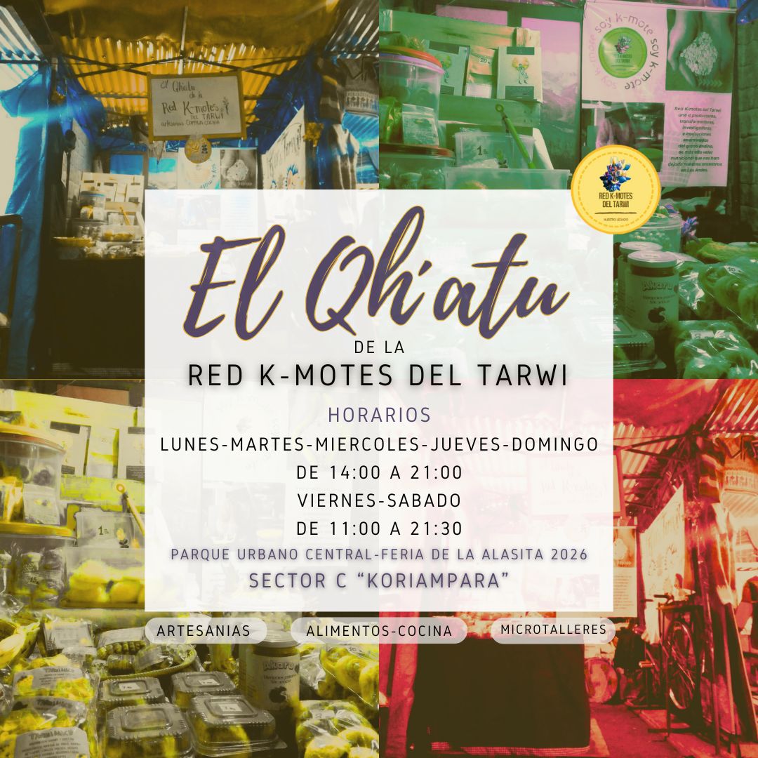 Esta Red viene trabajando en distintos espacios con actividades diversas que vinculan el campo con las ciudades, productoras/es con transformadoras/es y consumidoras/es. Este año La Red K-Motes del Tarwi se encuentra participando con un puesto de venta en la Feria de las Alasitas en el centro paceño, específicamente el Parque Urbano Central lugar que acoge esta gran feria.