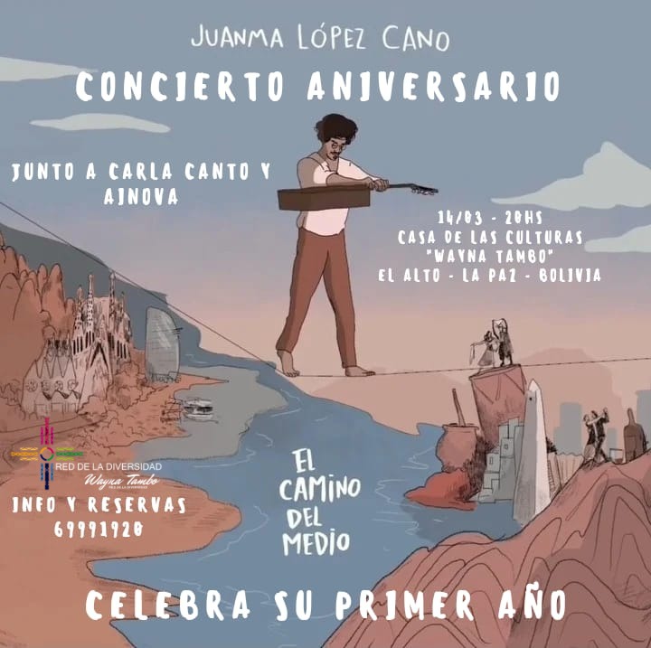 Dice uno de los versos del tema musical que lleva por título Tejedores, en autoría e interpretación de Juanma López cano, quien se encuentra de visita en el departamento de La Paz a propósito de la celebración del 1er año de vida de su disco El Camino del Medio. Se ha realizado ya una presentación junto a Carla Canto y Ainova el pasado fin de semana y ahora se tiene programada otra presentación en la Casa de las Culturas Wayna Tambo este 14 de Marzo a las 20:00 hrs.