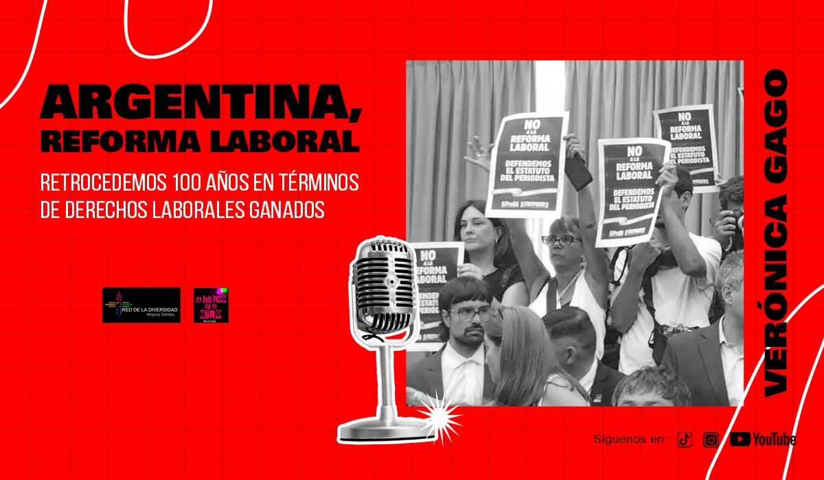 La jornada de trabajo se extiende legalmente a 12 horas y además el patrón tiene la posibilidad de establecer lo que se llama banco de horas, es decir, que si una jornada dura 12, 15 horas, ya no es necesario que se paguen horas extras, entonces, todas esas horas que van más allá de las 8 horas reglamentarias, sino que el patrón administra un banco de horas y dispone las horas de la jornada laboral como quiera. Lo mismo la fecha de las vacaciones, es decir, hay una reformulación de fondo sobre los límites que han puesto luchas históricas sobre cuánto tiene que durar una jornada de trabajo, cuánto es necesario que se abone como jornada extra si esas jornadas se extienden y por supuesto, hay una discusión que se ha dado en la Argentina de si esta reforma afecta solo a los trabajadores y trabajadoras registradas o afecta a la clase trabajadora en su conjunto, realmente es esto segundo, ya que lo que esto modifica no solo son las condiciones de contratación de quienes tienen trabajo registrado, sino que es un impulso a la precarización también de los trabajos con condiciones informalizadas, es un impulso corporativo a la precarización del trabajo y, además, es una desresponsabilización, por supuesto de las patronales…..ponemos aquí la conversa completa junto a Verónica para que sigas escuchando su intervención…