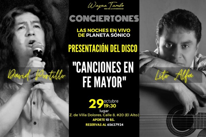 Hola, amigas y amigos, donde sea que nos vean y nos escuchen sean bienvenidos a los Conciertones de la Wayna Tambo y a las Noches en vivo de Planeta Sónico. Hoy tenemos la felicidad de presentar aquí en vivo a Orlando Alfaro “Lito Alfa” y a David Portillo, dos talentos bolivianos en el arte de...